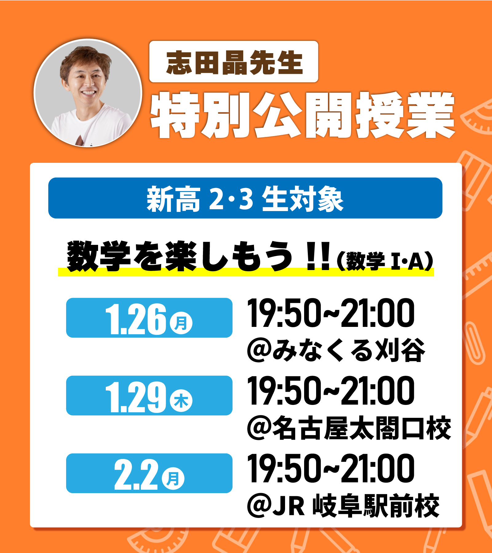 志田晶先生特別公開授業 再設定の日程について