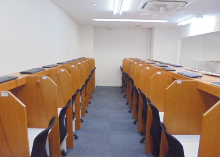 【受講ブース】パーテーションで区切られ、各ブースにPCが設置されています。自分のタイミングで受講を開始することができます。