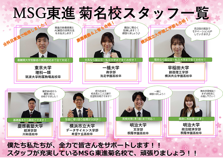 【菊名校スタッフ一覧】僕たち私たちが全力でサポートします!!